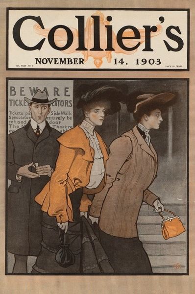 Edward Penfield made this illustration, ‘People we pass,’ as a book cover using the printmaking process of lithography. Penfield applied his design to a flat stone or metal plate with greasy crayon or ink, then treated the surface to hold ink only where the design was. He would then have repeatedly pressed paper against the treated surface, allowing for the design to be multiplied. The flat, graphic style and bold colors owe a debt to Japanese woodblock prints, which were hugely popular at the time. And we see the influence of Japonisme here not only in the aesthetics, but also in the subject matter of the urban street scene. The image presents an array of stylishly dressed individuals, their clothes giving hints about their economic status. What’s fascinating is that Penfield’s print was itself a product of industrialization, a process which transformed cities like New York and created a new culture of mass consumption. This cover would have been rapidly reproduced and distributed, a small part of a much larger economy of images and objects. In short, by exploring its materiality, we begin to see how the work connects with the social and economic fabric of its time.