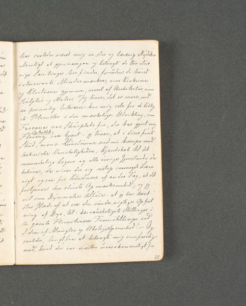 Curator: Looking at "Rejsedagbog. Firenze," made in 1846 by Johan Thomas Lundbye using drawing on paper, what strikes you most about it as an object? Editor: I'm immediately drawn to the intimacy of it. It's a sketchbook page, not necessarily intended for display. It feels very personal, almost like a private thought made tangible. What can we learn from the way this artwork was created, through process and materials? Curator: The use of paper and drawing marks suggests immediacy and accessibility, defying the elevated status of more traditional art forms like oil painting. Think about the societal context of Lundbye’s time. The accessibility of materials was widening but wasn't yet democratized, who had access and means? Editor: That's interesting. So, the very act of choosing this medium instead of something more traditionally "high art" says something about the artist's intentions, and also the availability and affordability of resources in that era? Curator: Precisely. It directs our attention away from simply appreciating the *image* depicted. It makes us consider the labor, the class implications of art-making, even the availability of materials, such as types of paper and ink. Were they readily available, or were there production limitations that influence the style? Editor: That shifts my perspective entirely. I was initially focused on trying to understand what was written, but I now appreciate the physical object and the circumstances of its making. The accessibility challenges our definition of 'art'. Curator: Absolutely! Material analysis helps dismantle hierarchies, allowing us to find meaning and value beyond aesthetic concerns alone. Editor: This focus on materials and context has completely transformed how I understand this piece, thank you. Curator: Indeed. I find I appreciate it more too, knowing its production opens discussions about class, consumption, and the creation of value.