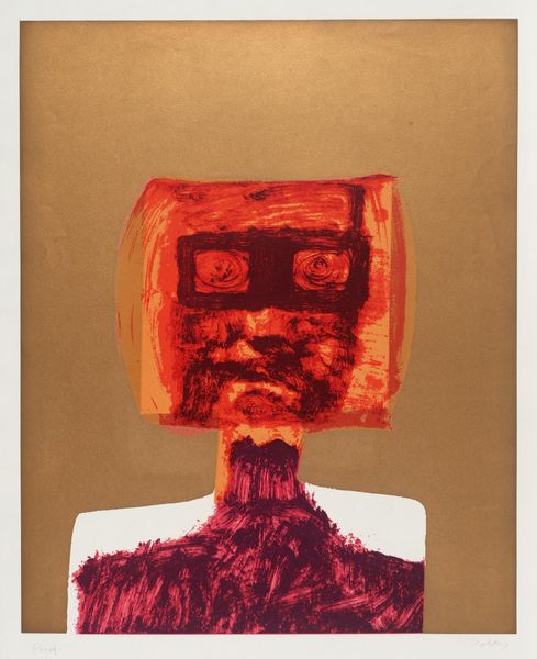 Sidney Nolan, born in Melbourne, made this work titled Kelly V. Nolan’s Kelly series reflects a deep engagement with Australian identity and history, especially the legend of Ned Kelly. The iconic square helmet becomes a mask which conceals identity but also serves as a stark symbol of defiance against authority. Kelly, often seen as a folk hero, represents a complex intersection of class, rebellion, and survival in the face of colonial oppression. The parrot's inclusion evokes the native landscape. But this is no simple tale, Nolan’s Kelly exists as a contested figure, mirroring the ambiguities within Australian history. "Kelly is a mystery to me," Nolan once stated, "the black mask… condensing the endlessness of the bush". Ultimately, Nolan presents a potent reflection on power, identity, and the enduring legacy of resistance.