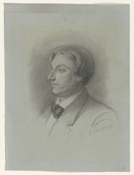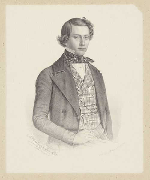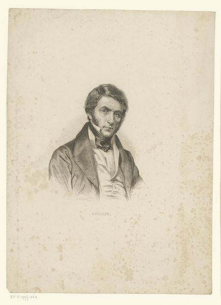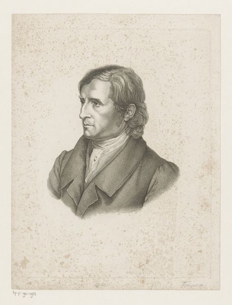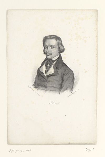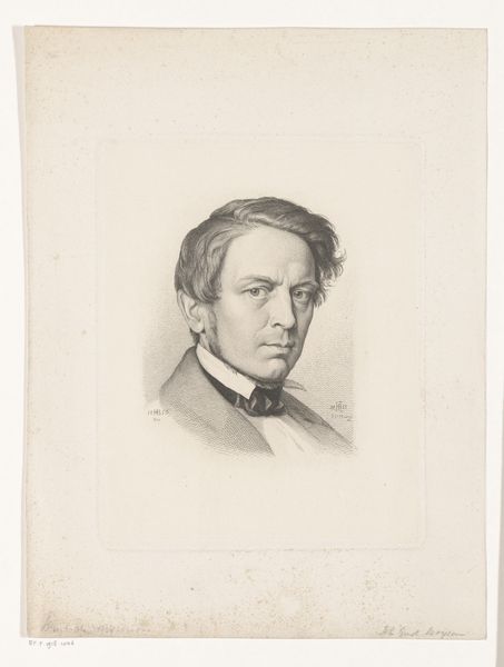 Editor: This is Nicolas Maurin's "Portret van Victor Cousin" from 1838, created with pencil. It has a formal, almost romantic sensibility. I find it quite compelling; his gaze is rather intense. How do you interpret this work within its historical context? Curator: Well, considering the time, it's vital to remember the social function of portraiture. In the 19th century, a portrait, particularly of an intellectual like Victor Cousin, served as a marker of status and intellectual clout. Consider how Maurin uses the pencil medium. Do you find the technique democratizing, considering it is a drawing and not an oil painting? Editor: I hadn't considered that. It's true, a pencil drawing might be seen as more accessible, or perhaps less overtly opulent than a painted portrait. It's a portrait of a philosopher. Did that influence its visual language? Curator: Undoubtedly. Think about the context of the burgeoning philosophical movements of the time, Cousin’s own influence on French philosophy, and then think about how portraiture serves as a kind of visual branding. This wasn't merely about likeness. How do you think Maurin tried to visualize Cousin’s intellect through the artwork? Editor: I guess I see it in the intensity of his eyes and in his composed demeanor; it projects intelligence. So it's about conveying intellectual authority, perhaps legitimizing Cousin’s position in society. Curator: Exactly! And considering Maurin's career trajectory, making lithographs for a wide audience, how does that add to understanding the portrait's intent beyond the artistic? Editor: It frames it less as pure art, and more as a visual representation for widespread recognition, almost promotional, but for intellectual influence. Curator: Precisely. And perhaps that is the most enduring function of such portraits within society and history. They shape legacies. What did you learn from considering its social function? Editor: Seeing this as a promotional tool rather than *just* art gives me a totally different view! It highlights the dynamic relationship between art, influence, and historical context, and now it challenges my perspective. Thanks!