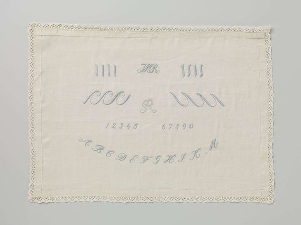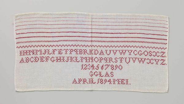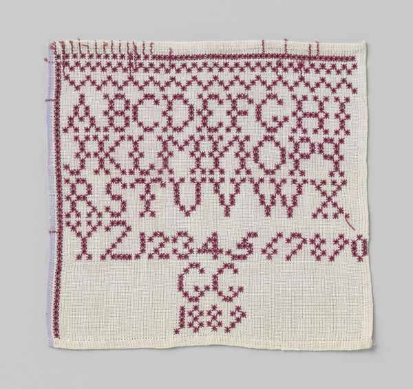 This linen sampler with red cross-stitched letters, marked "GG", embodies concepts of literacy, skill, and domesticity. The cultural significance of such a piece is tied to the history of education, particularly for girls and young women. In countries like the Netherlands, samplers were commonly made as exercises in needlework and alphabet learning. They served not only to demonstrate proficiency in sewing, a highly valued skill, but also to inscribe the maker's identity through her initials. The act of stitching each letter reflects a broader societal emphasis on female accomplishments within the domestic sphere. This "Merklap" signifies a moment in the education of G. Glas, teaching her the alphabet and the art of needlework. The piece raises questions about the role of women in society and the institutional structures that shaped their education and opportunities. By researching school curricula and domestic practices of the time, we can better understand the social context that gave meaning to this carefully crafted sampler.