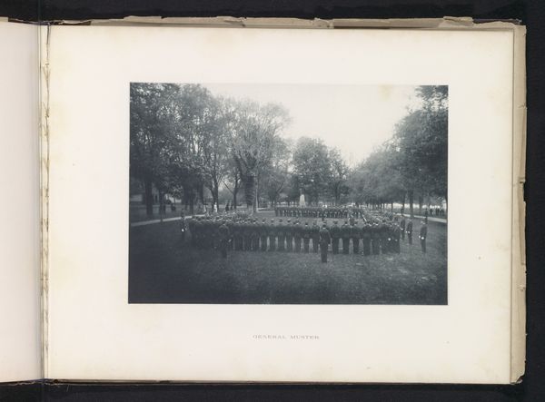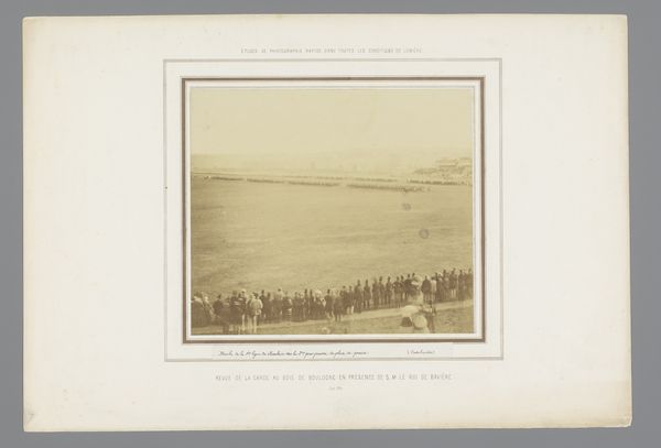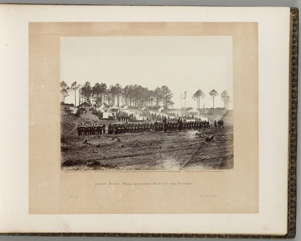 Curator: Here we have Timothy O'Sullivan's "Wagon Park, Brandy Station, Virginia," a photograph that presents a seemingly endless array of wagons in a field. Editor: My initial impression is one of overwhelming order, a regimented landscape of canvas tops juxtaposed with the wild grasses in the foreground. Curator: Exactly. Note how O'Sullivan uses the formal structure of the wagon rows to create a sense of depth and perspective, almost forcing the viewer to contemplate the sheer scale of the war effort through material means. Editor: And those material means are fascinating. Consider the labor involved in creating, maintaining, and deploying these wagons. Each one represents untold hours of work, the exploitation of resources, and the logistics of war. It's about the making! Curator: True, but the stark contrast between the organized wagons and the natural, almost chaotic, field is powerful. It speaks to the imposition of human will, of war, upon the landscape. Editor: I see it less as imposition and more as a record of an industrialized war machine and its impact on both landscape and its inhabitants, human and otherwise. How those wagons facilitated that, through production and labor. Curator: A nuanced observation, indeed. The visual language of the piece speaks to the complexities inherent in depicting conflict, doesn't it? Editor: Absolutely, it shows how even simple materials carry complex historical and ethical weight.