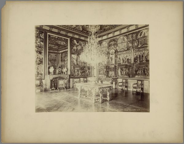 Here, we have a photograph of the Cabinet du Conseil in the Palace of Versailles by the artist JD. The image is dominated by the elaborate interior architecture. The eye is drawn to the complex interplay of light and shadow across the ornate decorations. Notice how the linear perspective converges towards a vanishing point, creating an illusion of depth. This technique, favored during the Renaissance, serves here to emphasize the room's vastness and the power it represents. The crystal chandelier functions as a focal point. It disrupts the rigid geometry of the room with its intricate, organic form. Reflections in the mirrors amplify the room's dimensions, destabilizing our perception of space. The artist strategically uses these elements to both represent and challenge the established order, inviting us to reflect on the nature of representation itself. The very act of photographing this space raises questions about power, visibility, and the gaze.
