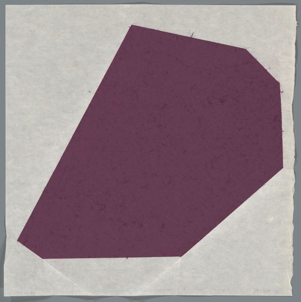Curator: Welcome. We're standing before Maria van Elk's "Gevouwen vorm," a collage created in 1986. It primarily features paper as its medium, showcasing geometric abstraction. Editor: First thought? That saturated purple diamond seems to be levitating on a subtle white ground, giving off such an unexpected and soothing presence. It's both solid and strangely weightless. Curator: Interesting. When considering Van Elk's practice, especially during this period, it’s vital to examine her meticulous process. Note how she treats the material—not just as support but as an integral part of the composition. She consciously folds and layers, embracing the physical qualities of the paper itself. Editor: True. And it's the kind of "doing-away-with-more-than-doing" that whispers rather than shouts! Makes you wonder if it’s a deliberate statement on labor and reduction. Do less, reveal more! Curator: Precisely. Van Elk’s works often engage with modernist principles, reducing forms to their essential components. The act of folding, simple as it appears, transforms the surface and creates depth, blurring the lines between sculpture and image. Consider also the social context of the time. Collage, as a medium, found prominence, challenging traditional notions of art production through its accessibility and emphasis on process over virtuosity. Editor: You know, it's tempting to read emotional intent in this. The geometric, perfect form contrasting with the paper's natural fibers, it feels so balanced yet vulnerable! Maybe that purple signifies some concealed passion? Curator: Maybe, or it speaks more directly about material transformation—the power of the everyday made exceptional through artistic intervention. We see the consumption of something ordinary converted into art, and it prompts contemplation on worth and attention. Editor: Well, regardless of which lens we view it from, its enduring presence invites pause, right? That little gem makes you slow down, see beyond first impressions, see more through the simple. Curator: Indeed. A powerful testament to considered creation, and a testament to what can come about when material constraints embrace artistic freedom.