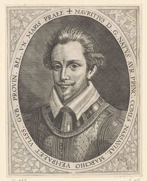 Editor: This engraving, "Gian Lorenzo Bernini," made in 1622 by Ottavio Leoni, has this air of seriousness about it, even a bit of melancholy, wouldn't you say? What catches your eye when you look at this portrait? Curator: What I see is a potent assertion of status carefully constructed within the visual language of the early 17th century. Note the frame itself—an elaborate octagon, not a simple rectangle, immediately signalling importance. Bernini, already celebrated, is presented within a codified framework that speaks to ideas of nobility and artistry. Consider the gaze—it isn't a casual glance, but an intentional engagement that reinforces an active negotiation of power. Editor: Negotiation of power? Can you expand on that? Curator: Well, think about who is commissioning and creating these portraits. Wealthy patrons or the artists themselves. This image serves a distinct purpose within the social milieu of Baroque Rome. It reinforces notions of masculinity, status, and talent. Notice the meticulous rendering of the lace collar, the details of the garments and cross—all conveying a particular class identity. What do these specific visual elements tell us about societal values at the time? Editor: I guess they tell us about what was valued back then, so maybe it’s pushing back on older notions, or trying to reframe conversations about social hierarchy? Curator: Precisely! The portrait subtly reshapes conversations of value. The tools of artistic creation weren't accessible to everyone. Leoni's portrait doesn't just depict Bernini; it situates him within ongoing dialogues about societal worth. Editor: I see. So, it's not just a pretty picture, it’s actively engaging in something. Thank you for helping me see past the surface! Curator: Of course! The real value often lies in uncovering these layers.