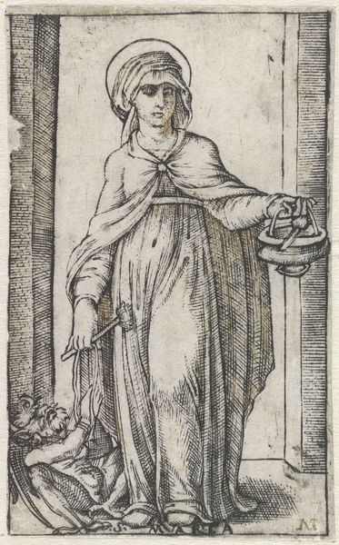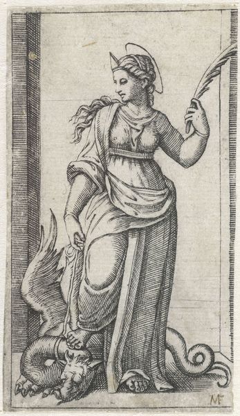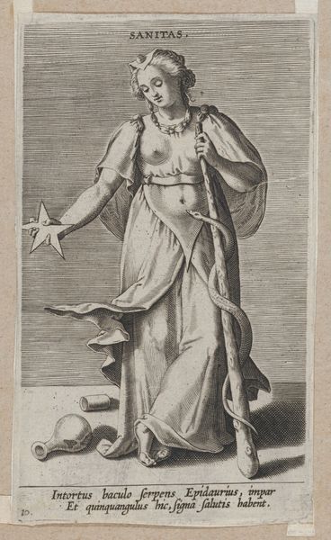 Editor: This engraving, "Moon," created in 1569 by Abraham de Bruyn, features Luna with a ship and what looks like a large lobster. The detail achieved through the engraving process is striking. What particularly intrigues me is the combination of allegorical figure, seascape, and everyday marine life. How do you see the convergence of those subjects in this piece? Curator: For me, the allure lies in the method of production, which in turn informs our understanding of the work. This engraving reflects the labor and resources necessary for both creation and dissemination. It questions what materials were used and why. Editor: Could you expand on that a little bit? Curator: Certainly. The engraving process itself — the labor involved in carving the image into a metal plate — allowed for mass production and distribution of images. It makes me consider access and class in a broader perspective. Further, consider the paper itself: its source and what trade routes affected it. This process democratized images, challenging the elite control over art we associate with paintings or sculptures. How does considering its means of production shift your perspective? Editor: That makes me think about how printed images like these were consumed by the merchant class in port cities like Antwerp. So this work gives insight into trade as much as classical allegory. The lobster is literally grounded while the moon and ship sail freely, connecting it with mercantile pursuits. I suppose this print can function as evidence of a social structure of consumption, where new kinds of printed allegories helped make sense of the new social dynamics. Curator: Precisely. Seeing this as a commodity helps contextualize its function beyond mere artistic expression. Editor: That connection between art and its means of production offers such a richer understanding. Thanks so much. Curator: Likewise. Considering the labor and material reality of art always yields rewarding insights.