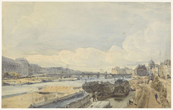 Thomas Sully painted this watercolor, Shore Scene with Buildings and Boats, during the height of his career as a portrait painter in the United States. Looking at this work, it provides a glimpse into the social and economic landscape of early 19th-century America. Sully, known for his portraits of the elite, here turns his attention to the everyday life of a maritime community. The contrast between his celebrated portraits and this more humble scene speaks volumes about the diversity of American life at the time and the varying subjects deemed worthy of artistic representation. The muted tones and careful detailing offer a sense of realism, yet Sully's artistic license is evident in the composition. To fully understand this piece, one might delve into the economic history of American port cities, the art market, and the cultural values that shaped Sully's choices. Ultimately, this artwork encourages us to consider the artist's role in documenting and interpreting the world around them, reflecting the values and social structures of their time.