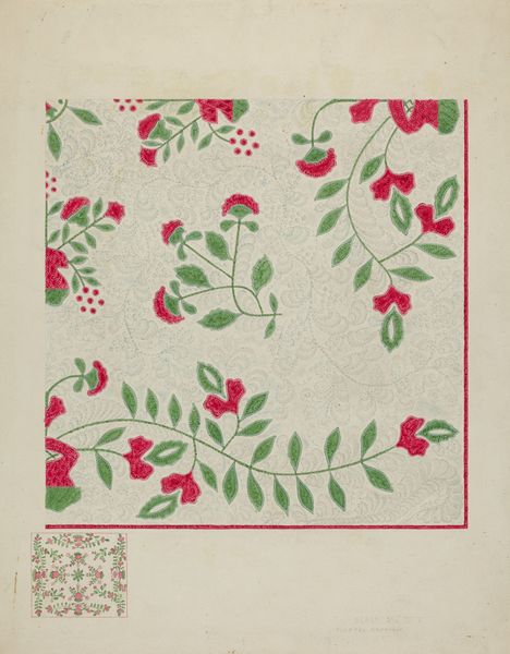 This 'Quilt' design by Gladys Phillips, made with what looks like watercolor, feels so considered. The red and green palette is simple, but so effective in bringing out the intricate details. The artist seems interested in the process of artmaking. There’s a real material presence to this piece. You can almost feel the texture of the paper through the delicate washes of color. It's as if each mark, each carefully placed leaf and berry, is a tiny act of meditation. Notice how the vine patterns create a sense of movement, a gentle rhythm that draws you in. And that central motif, the flower encased in a circle of triangles - it's so precise. Phillips’ work reminds me a little of the playful patterning of some of the early 20th century avant-garde artists. Like them, she embraces ambiguity and multiple interpretations, inviting us to bring our own perspectives to the mix. It’s art as an ongoing conversation, an exchange of ideas across time.