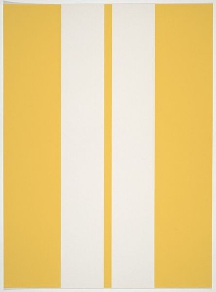 Curator: Standing before us is an Untitled work by Leon Polk Smith, a drawing created in 1972. What strikes you first about this composition? Editor: Well, it's sunny! Like a stack of half-eaten lemon squares against a stark vanilla sky. There’s something about the interplay of those sharp, yellow triangles with the rounded rectangles that's almost…playful. Curator: Indeed. Smith's hard-edge painting style is evident even in this work on paper. The geometric shapes are meticulously rendered. Note how the simple division of forms—rectangles bisected by diagonals—creates dynamic tension within a limited visual field. It epitomizes some movements of colour-field-painting here. Editor: Absolutely. The negative space becomes as important as the painted areas, doesn't it? And the subtle line work...almost feels like a ghost drawing hovering just beneath the surface of reality. Makes you wonder what lies behind the bold strokes. Curator: The reduction of form allows one to apprehend the underlying structures governing spatial relationships. One can understand the formalism driving not just Smith, but his peers within modernist painting generally. Editor: I think of Smith in dialogue with Josef Albers somehow – colour as form, feeling as concept. And also as the bridge towards artists later creating installations through light. Is there something you observe, seeing it this time around, that moves you differently now? Curator: On closer viewing, I am appreciating now the balance created between order and unpredictability. A reminder perhaps that within constraint also exists freedom. What stays with you, leaving this work behind? Editor: Definitely the echo of sunshine on a white wall, reminding us that simplicity can hold multitudes.