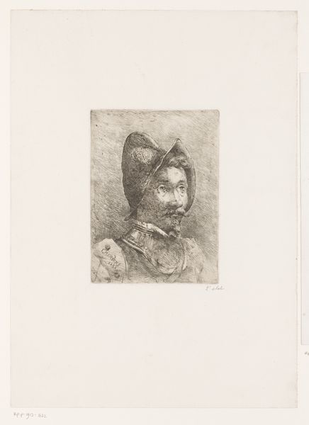 Curator: Here we have Willem Witsen’s “Portret van Amit,” circa 1921, housed right here at the Rijksmuseum. It’s a drawing, executed in pencil on toned paper. What's your initial take on it? Editor: Immediately, there's a quiet dignity that radiates from this portrait. The man's gaze is direct, but not confrontational. His headwear and the careful shading around the eyes speak to a complex identity and history hinted at but not overtly explained. Curator: Indeed. Witsen's choice of pencil and toned paper speaks to the immediacy and accessibility of the medium itself. It bypasses the potential for grandstanding seen in oil painting, and suggests a direct relationship between the artist and sitter. What about the visible sketch lines; do those speak to a specific historical influence? Editor: Absolutely. The unfinished quality, the visible lines, gives us a sense of the working process. It nods to modernist movements away from strict academic realism but also the importance of raw talent and material expression. This style evokes, for me, the colonial world and how the artist might relate to depicting sitters during a period of immense cultural shifts, a way of perhaps suggesting the work in progress, not just of the image but the world itself. Curator: Very insightful! Witsen often moved within artistic circles deeply engaged in social and political questions. His interest in depicting someone like Amit signals a desire to grapple with broader societal narratives, even within the framework of portraiture. Editor: Exactly. Beyond the technical skill, I see the hat that Amit wears is interesting in relation to other visual representations, what does that symbolize? Does it connote power, religion, or some other status or cultural association in the sitter’s culture or within this time and space of the image? The mustache itself is fascinating as a signifier of masculinity. These symbols are laden with potential narratives. Curator: These clues indeed prompt us to consider the nuances within this seemingly simple portrait, which can open an exciting historical study about the sitter or even the status of pencil work in this artist’s overall material practice. What’s been your final impression looking at it more closely? Editor: I’m leaving here wanting to know more about Amit and the relationship between the artist and sitter. Curator: I'll walk away thinking more deeply about the value we give to “simple” tools and how drawing remains a foundational aspect to various complex social meanings.