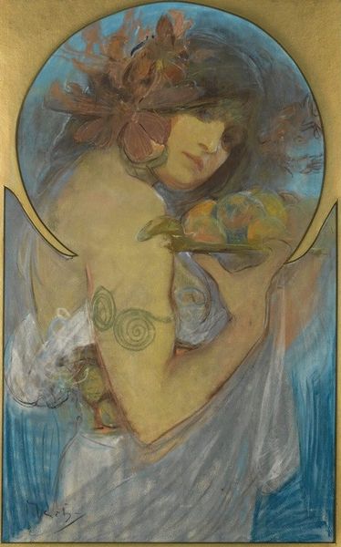Curator: Looking at Lisa Yuskavage's "My Rainbow Scarf" from 2013, the first thing I notice is the ethereal, almost dreamlike quality of the figure. She seems to be emerging from a hazy, undefined space. What do you make of it? Editor: I feel like I've stumbled upon a private moment. There’s a certain vulnerability but also a defiant pride in the subject's gaze, or what little we can see of it. And the scarf is that wonderful burst of colour amidst a largely desaturated palette; like sunshine after a storm. Curator: It’s interesting you bring up the palette. Yuskavage employs oil paint here to explore flesh tones and to create, really, a contrast between this luminescent scarf, as you've put it, and the rest of the canvas, the hazy background. I'm thinking about the labour in producing this "look." The painting style places it firmly in a contemporary take on neo-expressionism. We have these erotic elements and it definitely challenges what's 'high art' or 'craft' with its raw but skilled material usage. Editor: Absolutely. I can’t help but think of those old master paintings – goddesses and nymphs – but then Yuskavage adds this undeniably modern twist; the scarf seems like a neon sign wrapped around classicism. There’s something incredibly provocative about reclaiming and repurposing the female nude. It’s almost as if she is in control of the spectacle of her body and the painter is following suit. Curator: That perspective really illuminates the socio-political undercurrent of this piece. In "My Rainbow Scarf", Yuskavage's process involved a negotiation between these various art historical contexts, all of this while considering her contemporary audience. We, in turn, are complicit through the act of consumption of it all. Editor: The ambiguity draws you in. Who is this woman? Where is she going? The muted background almost gives the effect of a memory, blurring the details but intensifying the emotion. She is the subject, the main attraction, almost daring us to define her solely by our consumption of her image, her materials. A wonderful thought piece, if you let it sink in. Curator: A perfect place to pause. The complex layers, both visual and contextual, encourage ongoing examination and reflection, I would say. Editor: Indeed. An unsettling beauty that keeps you looking, questioning, feeling… and maybe smiling a little.
