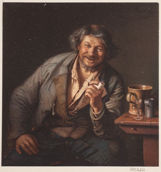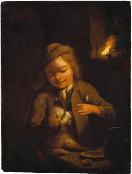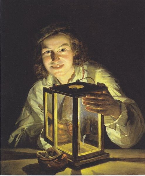 Charles Willson Peale captured James Peale in this dimly lit portrait. The painting's composition is strikingly intimate, almost voyeuristic, with the muted palette creating a solemn atmosphere. The light from the lamp not only illuminates James Peale’s aged face and the miniature portrait he holds, but it also functions as a visual metaphor. The strategic use of light and shadow suggests an exploration of memory and reflection. Peale is not merely showing us a likeness; he’s inviting us to contemplate the act of looking itself. The formal elements challenge fixed meanings. Is it a celebration of legacy, or a meditation on mortality? This ambiguity destabilizes traditional portraiture, opening a space for us to question what we bring to the act of viewing. The composition leaves us in a liminal space between observation and introspection.
