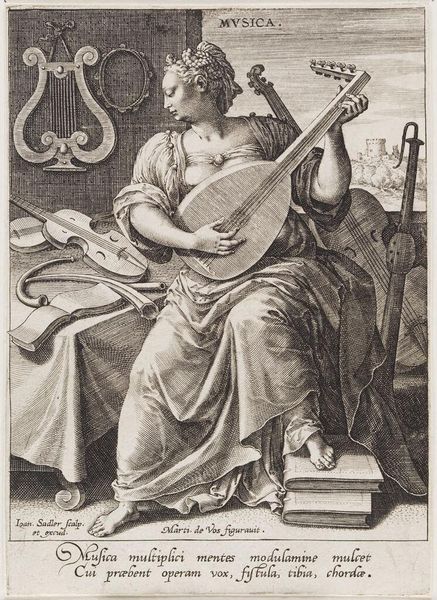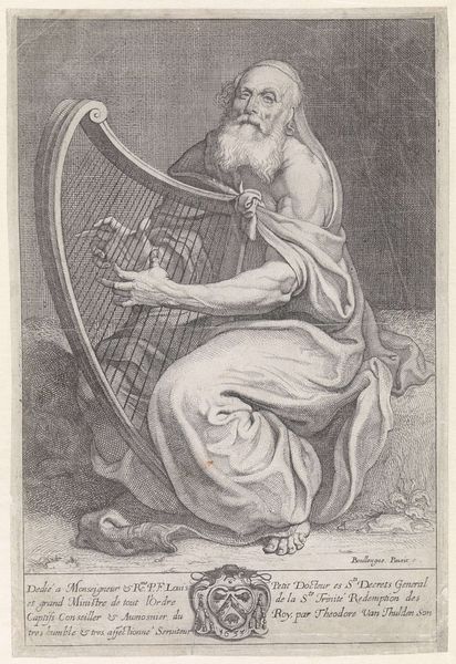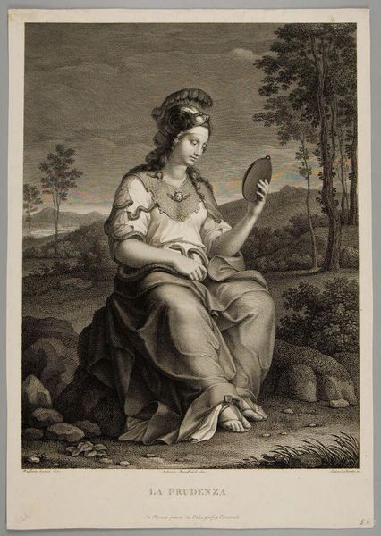 Curator: This oil painting is titled “The Muse Calliope," created around 1652 by Eustache Le Sueur. My initial reaction is one of tranquility, it's such a calming portrait! The oval composition seems to cradle the subject. Editor: Yes, and note how that oval shape, almost like an egg, encloses the representation of feminine power, which often went unacknowledged. Calliope, as the muse of epic poetry, was essentially the voice of grand narratives and the cultural memory in ancient Greece. What do you make of the crimson cloth? Curator: It strikes me as almost… discordant? A flash of passion, disrupting the serene backdrop and Calliope's contemplative mood. Maybe it represents the potent emotions that fuel great stories. I wonder, did Le Sueur consciously choose such an unusual medium for a historical painting? The brushstrokes almost seem hurried compared to her delicately rendered face. Editor: That contrast could highlight the tension between divine inspiration and mortal execution, between the ideal and the real. Red, historically, has often been tied to power, revolution and even violence. Given the role of history painting in the 17th century, this could be a comment on whose stories get told and how. Curator: Hmmm... you have given me pause for thought, I had only considered the artist as a medium of creative power! This contrast raises so many possibilities. Perhaps it hints at the sacrifices inherent in creativity, or the fiery emotions artists channel. Editor: Indeed, the piece prompts reflection on how art, particularly history, has often been mobilized for cultural and political aims. We must question these underlying narratives, seeking to amplify voices historically marginalized within such representations. Curator: What an interesting new way of approaching the subject; the layers within "The Muse Calliope" feel so expansive now, filled with many more subtle notes. I will return to this one. Editor: Agreed; the work invites us to continually reassess the past, keeping in mind its relation to contemporary struggles and possibilities for reimagining and restorying it.