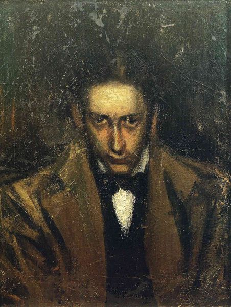 Edgar Degas painted this portrait, titled 'Degas in a Green Jacket', using oil on canvas. Degas’s own identity, steeped in the cultural milieu of 19th-century France, profoundly shaped his artistic vision. At the time in France, portraiture was deeply entwined with social status. This self-portrait is an intimate look at the artist himself, against the traditional function of portraiture as a display of wealth. It suggests a deliberate departure from those norms. The somber color palette and introspective gaze evoke a sense of melancholy. Degas never explicitly aligned himself with any particular political movement, but his art often engaged with the realities of class, gender, and the rapidly changing social landscape of his time. While the painting invites reflection on identity and social context, it also resonates on a personal level, capturing a quiet moment of contemplation that speaks to our own humanity.