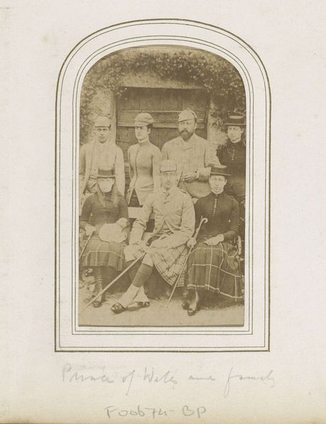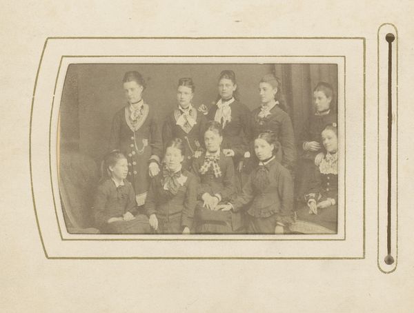 Curator: Looking at this piece, I am immediately struck by its curious blending of exoticism and what appears to be staged theatricality. Editor: It's true, there's an odd mix there. We're looking at "Groepsportret van Zweedse actrices gekleed als odalisken", or Group Portrait of Swedish Actresses Dressed as Odalisques. This photograph by Gösta Florman was taken in 1876 and resides here at the Rijksmuseum. The sepia tones give it such a dreamlike feel. Curator: The photograph is definitely indicative of a specific social trend, wouldn't you say? The vogue for orientalism clearly played a key role here, evidenced by the studio props and the women's adopted 'odalisque' costumes. The image highlights the socio-political context in which Western cultures consume and reshape imagery from the East. Editor: Absolutely. And in examining its production as an object, notice how the photographer crafts this entire fantasy, controlling not just the composition, but also manipulating the viewers' perceptions of the portrayed women. I wonder how readily these kinds of costume and props would be acquired? How widespread would it be as a pursuit of bourgeois photography and self-staging? Curator: That's very astute. Consider, too, the power dynamics in play. Who exactly are these Swedish actresses portraying and for whose consumption? It speaks to the colonial gaze that pervades much of nineteenth-century visual culture. It is essential to unpack these elements to gain a critical understanding of its significance. Editor: Yes, but it's also an instance of roleplay that likely brought those actresses pleasure. It feels like play and an exoticism and an example of the developing photography market and the way theatre played a part in this growth. What's striking is this odd, layered history that speaks to so many cross-cultural engagements. Curator: A fascinating consideration of process, definitely! Ultimately, though, it remains important to see that art, whether photography or painting, does not exist in a vacuum, it actively plays a role in shaping societal beliefs and power relations. Editor: Indeed, by acknowledging these dynamics we arrive at a much more complete vision of the moment in time this photo captures.