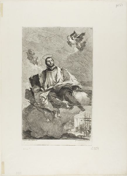 Curator: What strikes me immediately is the stark, contemplative atmosphere in this engraving; the fine lines really emphasize the play of light and shadow. It’s an image brimming with introspection. Editor: Agreed. Looking at Gilles Rousselet’s “Franciscus van Assisi in meditatie,” dating from 1620 to 1686 and held at the Rijksmuseum, I’m fascinated by how the engraving process itself informs the overall mood. Consider the labor involved in creating this image—the sheer dedication required to carve these intricate details, the way the tool is pressed into the plate… it mirrors Francis’s own ascetic dedication. Curator: Absolutely. The meticulous nature of the engraving parallels the saint’s own commitment to spiritual discipline. See how Rousselet captures Francis in deep communion with a skull, a clear *vanitas* symbol, with a crucifix almost secreted away in the shadows behind him? It speaks to mortality, of course, but also to a yearning for transcendence, as though meditating upon the bones is key to understanding eternal life. I think it beautifully captures the essence of Baroque art—melding drama with spiritual contemplation. Editor: I agree that the skull immediately signifies vanity, and it does more than that to me, honestly. Beyond the *vanitas*, the artist used the readily available bones for creating his drawings—engraving demanded a profound engagement with one's tools and materials. Do you agree? Curator: Yes, a material engagement, if I may say. Thinking about our own mortality is such a corporeal experience. It’s really driven home here by the physicality of the engraving process—that engagement of tool and mind to capture not only what we see, but what we *feel*. I sense Rousselet deeply pondering not only St. Francis’s devotion, but what the idea of devotion means for himself too. Editor: It seems like a rather profound and humbling occupation. Curator: Exactly. One can practically feel the weight of spiritual introspection pressing down as he worked. It is not just Francis we contemplate here. It is how devotion materializes through artistic labour, a meeting of spirit and earth. Editor: I will keep this thought in mind as I consider this image of the saint from now on. Thanks.