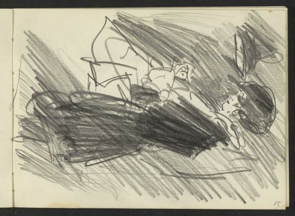 Isaac Israels made this drawing of a dancer, presumably in preparation for a painting, using what looks like a graphite stick. The interesting thing about a sketch like this is seeing how the artist’s mind works: a flurry of marks, a process of searching and erasure, as he tries to find the essence of the subject. Look at the dancer’s head, the thickness of the mark making suggests an energy, a flurry of movement. Then see how Israels added a few loops and lines to imply ribbons, hair, or movement. The single, bold horizontal line cuts across the top of the composition: is it a horizon line, or simply a way of framing the figure? This kind of mark making reminds me of Degas, who also made many drawings of dancers. The image is allusive and open-ended, with a quality of being unfinished, which I always find appealing. It is a reminder that art is not about fixed meanings, but about the ongoing process of seeing, thinking, and feeling.