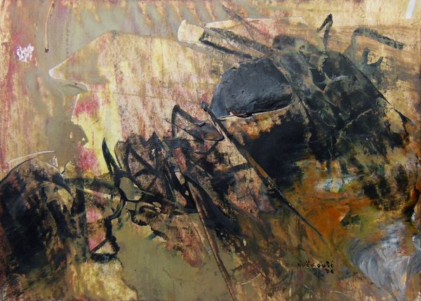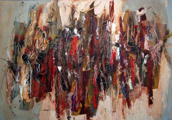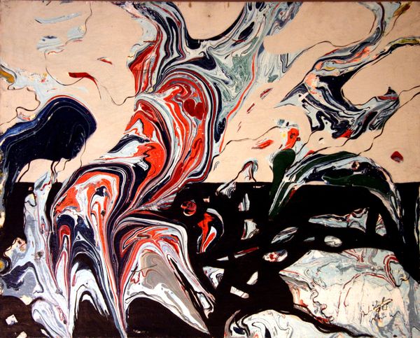 Romul Nutiu made this painting, called Route of the Snail, with paint, and with a real sense of what paint can do. The surface is a record of its own making, of dragging and pushing and layering. Look at that juicy dark green as it drips and pools, those bright red interruptions! There's a real physical conversation happening between the colors, they blend and bleed into each other, creating new and unexpected hues. It’s like watching different emotional states collide and merge on the canvas. Take the lower left corner, with that opaque white cutting across the dark green, like the flash of a thought. Nutiu lets us see the history of that thought, each layer and decision visible. He reminds me a little of Joan Mitchell, the way he uses color and gesture to create an all-over composition that's both chaotic and harmonious. Painting is always a route, and Nutiu shows us the joy in getting there.