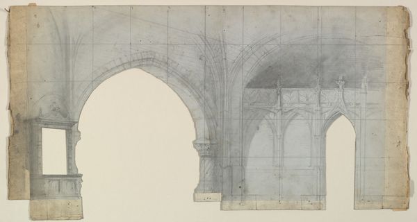 Curator: Eugène Cicéri’s “Design for a Stage Set at the Opéra, Paris,” created sometime between 1830 and 1890. It's currently held at the Metropolitan Museum of Art. Editor: Whoa, check out this colossal architectural sketch. Makes you want to leap into a Parisian fantasy! All that intricate pencil work hints at epic productions… totally grand-scale romantic opera vibes, right? Curator: Absolutely. The drawing utilizes colored pencil and print media to illustrate a Neoclassical design. What's crucial to understanding this piece is recognizing the Opéra's role not just as a place for artistic performance, but as a symbol of power, prestige, and often, political agendas. These stage sets were carefully crafted to uphold specific narratives, aligning the viewing experience with broader social values and political aims. Editor: You nailed it. It does feel propagandistic now that you point that out—though “escapist” is maybe what the designer intended. I could get happily lost looking at that delicate rendering. Does make you wonder about the backstage grit and drama that wouldn't be as ideal. The artist’s style, I think, captures the mood of 19th-century urban fantasy. Curator: Yes, and in thinking through the social lens, the actual opera experiences were also profoundly stratified, impacting viewing based on social standing. And the city backdrop itself. Look how Cicéri emphasizes the monumental aspects. Cityscapes are rarely politically neutral backdrops. Editor: Never! And back then? You could use your fancy binoculars to check out who was in which box—that would be half the fun! It seems less "design" and more "slice of life", in that respect. Curator: Exactly, it gives so much context for class, for seeing, and for what the urban experience entailed. This cityscape embodies the ideals and performances of social power, too. Editor: Seeing that design really sparks my curiosity. To think what's hidden inside those great spaces, where culture and social rules collide! It almost feels like uncovering a buried history. Curator: Precisely. It forces us to confront these hidden stories, to decode how cultural narratives shape not only our art but our social understanding.