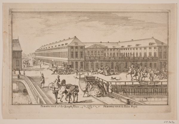Here we see Johann Georg Rosenberg's rendition of the Gendarmenmarkt in Berlin. Executed in delicate lines, the engraving presents a carefully ordered view of the city square, evoking a sense of calm and measured precision. Notice how Rosenberg employs linear perspective to create depth, drawing our eyes from the detailed foreground to the distant buildings. The buildings' architecture is rendered with meticulous attention, emphasizing the order and rationality emblematic of the Enlightenment era. The composition itself, divided into clear horizontal layers, reinforces a sense of structured space. The placement of figures and objects, such as the horse-drawn cart and barrels, seems carefully arranged, contributing to the scene's overall balance. Rosenberg’s treatment of space and form reflects broader intellectual currents of his time, emphasizing reason, order, and the importance of civic space. Yet, within this formal structure, the work offers a glimpse into the everyday life of 18th-century Berlin. This intricate print is not merely a depiction of a place, but a reflection of the values and ideas that shaped its cultural landscape.