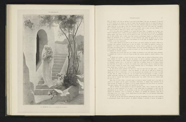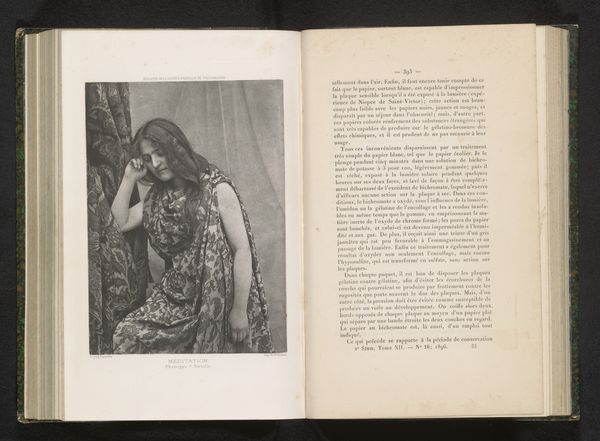 This is a reproduction of a painted portrait of Jane Hading by Alfred Philippe Roll. Now, it's hard to say what year it's from, but the softness of the image suggests a certain kind of dreamy attention to the subject. There's a real generosity in the way the portrait is rendered. The textures of the dress, the background foliage, even her skin, are all given equal care and attention. It's like the artist is saying, "I see you, I see everything around you, and it's all beautiful." Look at the way the light falls across her face and shoulder – how the artist allows the highlights to almost dissolve into the background, creating this sense of luminosity. It's a tender gesture, this act of seeing and representing another person. I'm reminded a little of John Singer Sargent's society portraits, where the artist is both celebrating and subtly questioning the conventions of representation. In the end, it's this ambiguity that makes the work so compelling.