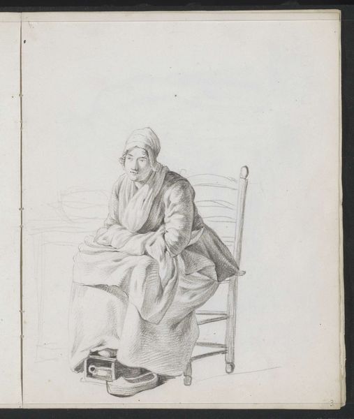 Curator: This drawing, titled "Vanity Fair Men of the Day, No. 33, Natural Selection," was created by James Tissot in 1871 using pen and ink. It depicts Charles Darwin as a caricature. What immediately strikes you about the piece? Editor: Well, aside from the rather exaggerated features which make it a clear caricature, I notice the contrast in textures, particularly in Darwin’s beard compared to the smooth fabric of his coat. What do you see in it? Curator: What's crucial to understand is how this image functions within its original context, which is the print run of Vanity Fair magazine. This wasn't a precious object for a gallery; it was mass-produced, circulated, consumed, and then likely discarded. Consider the means of its production—lithography—allowing for widespread distribution to a growing literate public, shaping perceptions of Darwin and his theories. How does thinking about the materiality and consumption of this print change your perspective? Editor: That’s a good point. Thinking of it as something disposable kind of changes the tone of the caricature. If it were a precious object, the caricature might be seen as malicious, but because it was printed in a magazine it makes it more playful or at least satirical. Was this image challenging ideas of ‘high art’? Curator: Precisely. It complicates the notion of high art by blending portraiture, caricature, and mass media. Tissot was, after all, a very well-known artist doing a drawing for a publication with pretty wide distribution, and it challenged traditional portraiture by democratizing representation. This caricature then is available for popular consumption in a time where ideas about class and culture are being challenged in England. Editor: That’s fascinating. Considering the process of creation and its distribution really puts a new spin on my understanding. It wasn't just about representing Darwin, it was about circulating ideas and constructing public image. Curator: Exactly, by questioning the artwork in its social, political, and economic framework we see its complexity and intention as an artifact.