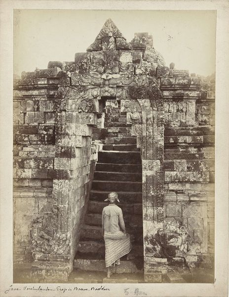 Kassian Cephas made this albumen print of the Prambanan Temple Complex in Java. Cephas embraced the relatively new medium of photography, with its capacity to capture a high level of detail, and to record architecture with accuracy. This image gives a palpable sense of the immense labor required to construct these temples. Note the highly textured surfaces of the stones, the complex carvings, and the sheer scale of the structures. The Prambanan temples reflect a sophisticated understanding of materials and construction techniques, and the labor practices involved in quarrying, transporting, and assembling the stones. Each block would have been individually shaped and placed, requiring a high degree of precision and skill. Cephas’s photograph is more than just a record; it’s a document of human endeavor, reflecting the social and cultural values embedded in the built environment.