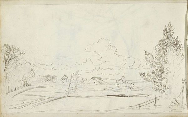Niels Larsen Stevns made this pencil drawing, "Udsigt over Peblingedosseringen mod Søtorvet," or "View over Peblinge Dossering towards Søtorvet," to capture a serene Copenhagen vista. The drawing itself is a quiet, almost intimate glimpse into the artist's perception of his surroundings. Stevns, working in a period defined by evolving national identity, seems to gently negotiate between the personal experience of place and its broader cultural significance. The scene is not one of grand national monuments, but a humble, everyday corner of the city. It invites contemplation on how national identity is also rooted in ordinary experiences. This sketch is a reminder that national identity is constructed not only through monumental symbols, but also through personal, quiet appreciation of everyday surroundings. It prompts us to consider the emotional landscapes that shape our sense of belonging.
