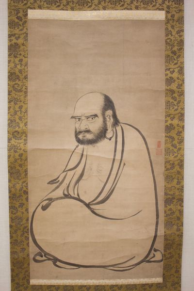 The 6th-century Indian monk Daruma, known in Sanskrit as Bodhidharma, is credited with founding the Zen school of belief in Buddhism. Kakō, who trained in Zen himself, stayed true to established iconography by representing him with large, round earrings and an exotic “hairy” appearance while adding a minimalist, meditative sensibility.