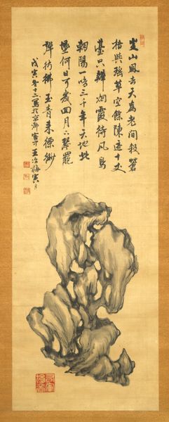 Editor: Here we have Unkoku Tōgan's ink drawing "Bodhidharma," dating somewhere between 1567 and 1633. The figure, rendered with swift strokes, has an intense gaze. What aspects of this work stand out to you, and how do you interpret it? Curator: The portrayal of Bodhidharma reflects the evolving role of Zen Buddhism within Japanese society at the time. These ink paintings, often produced by Zen monks or artists connected to Zen circles, weren't merely devotional images. How might we consider their role within elite social circles? Editor: Elite social circles? That’s not something I considered initially. Curator: Consider the cultural weight associated with Zen and its practice among the samurai class, for instance. The starkness of the ink drawing, the meditative quality...these weren't just aesthetic choices. They signaled something about the patron’s own cultivation and affiliations. Also, think about how the use of a Chinese subject connects it to an esteemed artistic lineage. Editor: So, the patron is signaling social status through commissioning this artwork? Curator: Exactly. The painting becomes a marker of taste, intellectual alignment, and even political positioning within a complex social landscape. Does seeing it that way alter your initial perception? Editor: Definitely. I was focusing more on the individual and his story, but this sheds light on how art serves multiple social functions simultaneously. I guess, sometimes we don't often think of these more historical points. Curator: Indeed, thinking about reception gives the painting continued vitality.