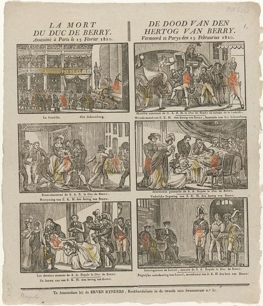 Curator: Allow me to introduce Honoré Daumier's "Dans la galerie du Louvre," a lithograph print rendered in ink dating back to the 19th century. Editor: Immediately, the composition strikes me. Two distinct scenes stacked one atop the other—almost like contrasting societal strata represented through caricature. The bustling museum upstairs compared to the almost feral scene at the jardin below. Curator: Yes, Daumier’s clever structure allows for a sharp juxtaposition. Note how he utilizes line work—the stark contrasts in shadow and light. This emphasis guides our eye and creates spatial depth in the two different environments, even with all the density of figures. Editor: I find this to be deeply social commentary. It feels as if he is critiquing the bourgeois, suggesting they are as uncivilized as beasts. Do you see the man pointing at the wildcat; a figure of hubris juxtaposed to the gawking socialites nearby? There's also commentary on artistic interpretation occurring above with the painter within the Louvre. Curator: Precisely, but not without consideration to Daumier's masterful technique. Notice how his cross-hatching in the upper scene gives the impression of an overwhelming number of artworks hanging, salon style, a testament to Daumier’s expert draftsmanship. There are underlying theoretical suggestions being made about value, authorship, and connoisseurship within the academy. Editor: It all culminates into a powerful indictment. A sense of disconnect, not only in visual space but in social understanding, pervades. Both spaces are cages, though one is lined with cultural capital, and the other contains a real wildcat. Curator: A reading I find especially resonant given the context and themes presented. His ability to communicate this via lines is extraordinary. Editor: Indeed, a sharp piece of wit and social critique worth reflecting on long after our looking concludes.