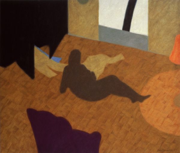 Editor: This is "An Afternoon at Jolka's," an oil painting by Iwo Zaniewski. It's hard to pin down the date, but it has the painter’s signature from ‘07. There's a woman reclining on a bed, with an unusual, slightly unsettling atmosphere. What do you see in this piece, especially considering its potential context? Curator: Well, immediately I notice the interplay between private and public spheres. We're seemingly invited into a very intimate space, Jolka's room perhaps, but the composition feels deliberately staged. The woman is posed, almost presented to us, raising questions about the relationship between the artist, the subject, and the viewer. Editor: That's interesting, I hadn't thought of it as staged. What elements contribute to that feeling? Curator: Consider the stark lighting, the bold colours, and the flatness of the figures. These choices remove the work from the realm of naturalism. We see a heightened reality, carefully constructed, so is it trying to convey certain socio-political ideals? Are the colours representing national symbolism or certain movements of the time? Editor: It’s a domestic scene, but definitely not in a cozy, idealized way. I was also reading "expressionism" as one of its styles and considering the state of politics back then it could express unease or angst about societal norms through something mundane like this. Curator: Precisely. Genre paintings like these were rarely ‘just’ a scene. Often, the seemingly personal was a stand-in for collective experiences. Editor: That helps me appreciate the layers within something that, at first glance, seems quite simple. Thank you, this has really shifted my perspective. Curator: Indeed. Thinking about art as a reflection of its time enriches our understanding. It encourages us to see the political, social, and cultural forces that shaped it.
