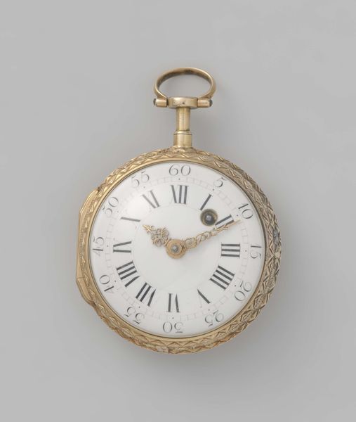 Curator: Well, isn't this an arresting object? It's a console clock, also known as a "Pendule a console," dating back to about 1715 to 1730, created by Isidore-Guillaume Champion. The primary materials appear to be bronze and gilding. Editor: It’s quite imposing. My first thought is death—the figure at the very top brandishes a scythe, no less. Very Baroque and ornamented, almost aggressively so. What can you tell me about the context of such a... stark piece? Curator: The Baroque aesthetic certainly favored opulence, but let’s consider the practicalities first. These clocks weren't merely time-telling devices; they were declarations of wealth and power. Guilding requires skilled labor; bronze-casting even more so. The fact that it’s sculptural moves it away from merely being a clock into high art, effectively separating it from craft production. Champion wasn't just making clocks; he was participating in the visual construction of social hierarchies. Editor: Absolutely. It served as a symbol of status, reflecting the era’s courtly rituals. Consider the placement in a grand salon – a silent enforcer reminding everyone, perhaps subtly, of mortality amidst the finery. It underscores the societal fascination, or perhaps obsession, with both time and its inevitable end, death. And that decorative program– note the figures entwined within floral decorations, classical allegories no doubt emphasizing lineage and power. Curator: Yes, allegory served specific ideological functions. To understand its impact, we have to look beyond just artistry and to its placement within a very controlled sphere of aristocratic consumption and display. What statements were they hoping to achieve by combining high style, skilled artisanry, and that morbid memento mori on top? Editor: Perhaps it’s a comment on the transience of power itself, but ultimately such art speaks of the patron and to their audience. Even something as quotidian as telling time became wrapped in social messaging. What does that tell us about how power wanted to see itself? Curator: It brings home the way social messaging got built into everything from civic planning to ornamentation – the level of intent in decorative art shows the way it was considered a soft, but essential power in shaping its society’s mindset. Editor: It shows how thoroughly crafted their worldview was, not just in policy and decree, but literally forged into the objects that populated their daily lives. Curator: A somewhat unnerving, but powerful thought.