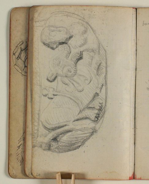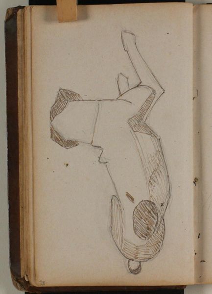 Editor: This is *Studie af brun bjørn*, a pencil and coloured pencil drawing on paper by Niels Larsen Stevns, sometime between 1864 and 1941. It looks like it’s right out of the artist's sketchbook. There’s a raw, immediate energy. What catches your eye in this piece? Curator: Well, immediately I’m drawn into the gesture, that wonderfully awkward embrace the bear seems to be caught in. It feels less about anatomical precision, more about capturing a fleeting moment of self-awareness, don’t you think? I wonder what he was feeling. Tell me, does the unfinished quality change the experience for you? Editor: Definitely. If it was hyper-realistic, I think it would lose some of its charm. Because it feels so preliminary, it invites me to imagine and collaborate with the artist. So, thinking about the bear's pose, it almost looks like he’s hugging himself. Was Stevns perhaps exploring ideas of isolation? Curator: Possibly. Or perhaps simply practicing capturing complex forms, those furry shapes... the reality of rendering fur with just a few strokes of a pencil. Maybe both? He seems preoccupied with defining the mass and the contour. What story do you invent for the animal? Editor: I think it is feeling introspective, maybe even lonely. Looking at the old, worn page around the drawing, it kind of reminds me how even fleeting emotions, like the bear's, can be preserved. This bear now outlives its feelings! Curator: Precisely! These studies often contain more truth than the finished articles. I often feel that way. It gives me a sense of continuity... it captures our ephemeral experiences. Editor: Absolutely! Thanks, it's helped me consider just how much an "unfinished" work can still communicate.