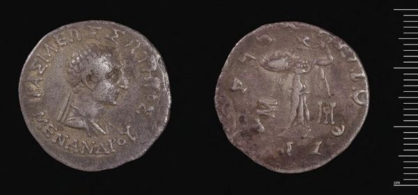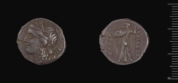 Curator: The striking silver coin before us is a tetradrachm of Ptolemy I Soter. Immediately, I notice the commanding profile and the rather austere overall aesthetic. Editor: Its surface is worn, yet the imagery is still potent. The eagle, a recurrent symbol of power and divinity, clearly resonates here. Curator: The composition is expertly balanced—a testament to the skill of the minters. Notice how the textural elements create contrast with the smooth planes of the face. Editor: Indeed. That eagle at Zeus's feet tells volumes. This coin isn't just currency; it’s a visual proclamation of Ptolemaic authority, rooted in both Greek and Egyptian traditions. Curator: The weight and feel of this object must have conveyed a tangible sense of value. The form itself communicated power. Editor: Precisely. Even now, it holds echoes of cultural memory. The symbols speak across millennia. Curator: A fascinating example of how form and function coalesce into a powerful artistic statement. Editor: Agreed. It gives us something to think about, doesn't it?