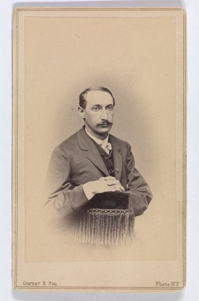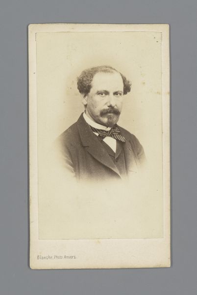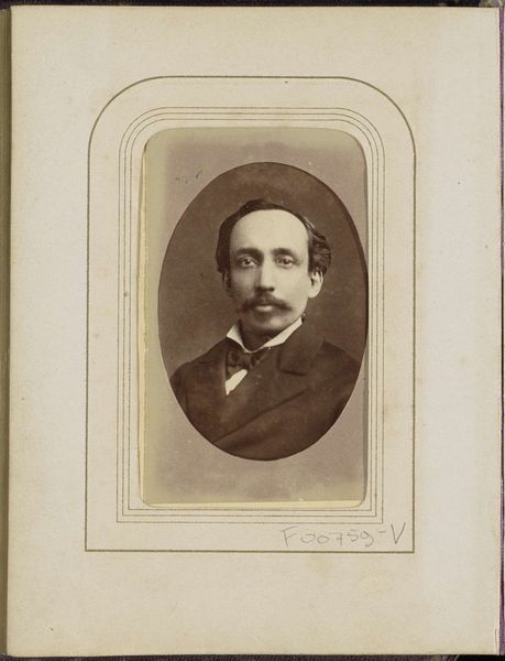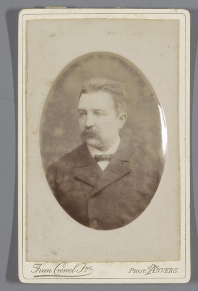 This is a sepia photograph, a "Portret van een onbekende man met een snor," by the brothers Cordes. The composition centers on the man’s upper body, framed by a soft oval vignette. The limited tonal range evokes a sense of nostalgia. The formal attire of the subject—dark jacket, light shirt, and patterned bow tie—contrasts with the man’s striking moustache, creating a focal point that underscores his individuality. The Cordes brothers have paid close attention to detail, capturing the texture of the man’s hair and clothing, lending a tactile quality to the image. In photographic portraiture, the subject's pose, attire, and expression are carefully constructed to convey social status and personal identity. Yet, despite these visual cues, the man remains "unknown," inviting us to question how identity is constructed through images. This photograph, therefore, exists as both a historical document and a semiotic puzzle.