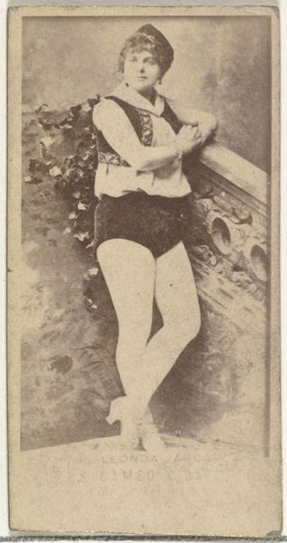This card of Mlle. Aehard, part of the Actresses series, was produced by Wm. S. Kimball & Co. At first glance, the sepia tones and compact composition of this piece evoke a sense of nostalgic intimacy. The subject, an actress, is captured in a seemingly private moment of reflection, seated on a rock, gazing into a mirror. Considering the image's function as a cigarette card insert, the composition takes on an added layer of meaning. The soft, muted tones and the actress's introspective pose are carefully constructed, creating a subtle interplay between public image and private self. The act of gazing into a mirror becomes a visual metaphor for the construction of identity itself, suggesting the performative nature of both acting and self-presentation. The commercial context challenges fixed notions of high and low art, inviting us to reconsider how meaning is produced and consumed through everyday objects.