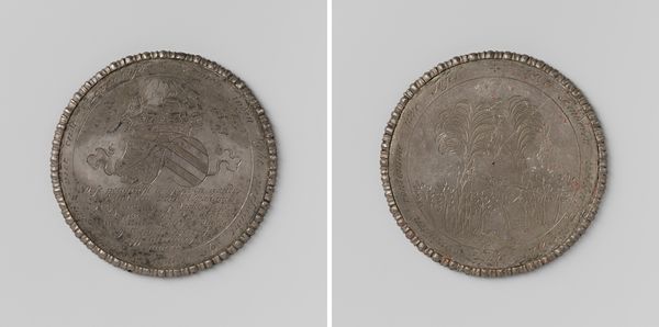 Editor: This is a metal relief sculpture from 1695 called *Overlijden van Maria II van Engeland*—the death of Mary II of England—by Jan Boskam. It's... quite tarnished. There are two sides visible, with portraits or scenes on each. What strikes me is its somber quality despite the Baroque style. How do you interpret this work? Curator: Well, considering the historical context is key here. Mary II’s death in 1694 was a significant event, triggering a succession crisis. But why depict it this way, as a seemingly simple medal? Doesn't it seem inadequate, considering its intent to capture an important historical juncture and to monumentalize the Queen’s death? I think we need to analyze how gender and power intersect in commemorative art. Editor: Inadequate? I was thinking it could be an affordable way for people to engage with the mourning process! Curator: That's a fair point! Democratization through art is always important to consider. But also note, during Mary’s reign, societal structures heavily limited women's political agency, so did representations of them. Commemorative medals often emphasized traditional roles, like piety and motherhood. But here, we don't see clear markers of either. Doesn't that absence feel potent to you? Editor: It does, now that you mention it. It’s more like a generic image than a specific memorial. Was that intentional, a reflection of societal anxieties surrounding female leadership at that time? Curator: Exactly! By examining the absences and subtle visual cues, we can begin to unpack complex power dynamics at play in this representation of Mary's death. What kind of narrative about female rule does this piece reinforce or challenge? Editor: I never thought of it that way. Thanks. It makes me see how social context changes how we value a piece of art. Curator: Indeed! It's about situating this "simple medal" in its intricate web of historical, social, and political forces that shaped its creation and continue to influence its meaning today.
