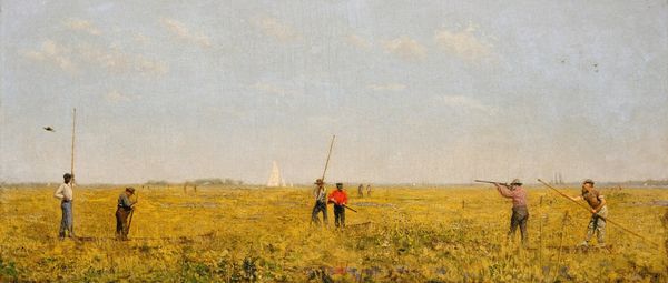 Grigoriy Myasoyedov painted this oil on canvas, called 'The road in the rye', in Russia, though we don't know exactly when. In it, a solitary figure walks through a field of rye. The image speaks to a sense of Russian identity connected to the land. Consider the period in which Myasoyedov was painting: it was a time of intense social change, including the abolition of serfdom. Artists wanted to show the lives of ordinary people and this painting reflects that. The painting can be read as a commentary on the changing social structures of the time, or it might reflect on the role of the peasantry in Russian society. It would be useful to know about Myasoyedov's personal life, his social circle, and his political opinions in order to get a deeper insight into the painting.