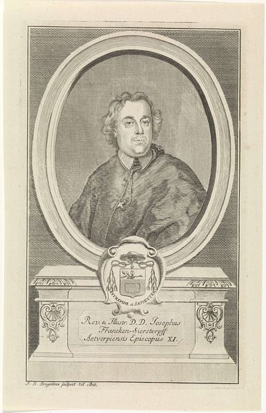 Curator: This engraving from 1791 offers us a glimpse of Jan Scharp, Predikant te Rotterdam, thanks to the artistry of Sophia Wilhelmina Evans. Editor: My first thought? A feeling of serenity. The portrait, framed by that delicate oval, draws you in. It’s got a quiet strength. Curator: Absolutely, that quiet strength stems from the Baroque sensibilities woven through its academic style. Note the controlled line work—almost neoclassical in its restraint, which captures the dignity of the sitter. Editor: Restraint is an interesting word here! Those tight, perfectly-formed curls of his wig contrast wonderfully with what I perceive as the depth and warmth of his gaze. Is that perhaps a suggestion of what the academic restraint keeps tightly hidden? Curator: A beautiful thought! Sophia Wilhelmina Evans’ technical prowess really shines through here. Engraving allows for this remarkable precision. The meticulous attention to detail in the face creates a compelling sense of presence, almost a silent dialogue with the viewer. Editor: Right, the materiality matters here! Each line contributes to the texture—you feel the fabric of his coat and perceive a gentle blush to his face. He just comes alive. Curator: What's so engaging is how she plays with light and shadow to shape Scharp's features, giving him a sense of gravitas but also an approachability. There’s an intentional, calculated diffusion. Editor: It almost makes you wonder, doesn’t it, about the unseen moments? This perfect composition is beautiful, sure, but there were also choices, erasures. What got lost between conception and completion? Curator: A testament to portraiture itself. It freezes a moment, immortalizes an impression, a life, transformed through artistic vision. Thank you for sharing these insights! Editor: Indeed. This artwork serves as a poignant reminder of the stories etched, literally, in art.