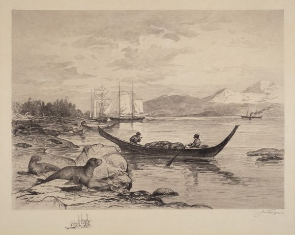 Editor: So, this is Christen Kobke's "The Bay of Naples with Vesuvius in the Background" from 1843. It’s a pencil drawing, currently residing at the Met. There's such delicate detail here; I’m drawn to how serene and still it feels despite depicting a busy harbor. What elements jump out at you? Curator: The rigorous linear perspective is most compelling. Kobke masterfully uses it to structure the pictorial space. Observe how the orthogonals converge toward the distant horizon line, where Vesuvius sits passively in the background. Editor: I see that. It’s so subtle, though. The softness of the pencil almost disguises it. What is the effect? Curator: Precisely! The restrained tonal range further enhances this effect, flattening the image while paradoxically creating depth. The composition, while seemingly naturalistic, is carefully calibrated. Note the placement of the boats, creating visual rhythms across the water, acting as strong verticals. Editor: It is such a stable, symmetrical composition. So what are the semantics of the drawing? Curator: The overall visual effect is one of idealized order and balance. The subdued palette creates an air of detachment. Even Vesuvius seems domesticated by its placement within the compositional scheme. What do you think Kobke implies about nature using a balanced visual frame? Editor: That's fascinating. The form really is foregrounded. It makes the sublime, or potentially dangerous, aspects of the natural world fit nicely into the neat composition of the artwork. Curator: Exactly. Form triumphs, containing and structuring even that which is volatile. Editor: Thanks, I hadn't appreciated just how carefully planned it all was before!