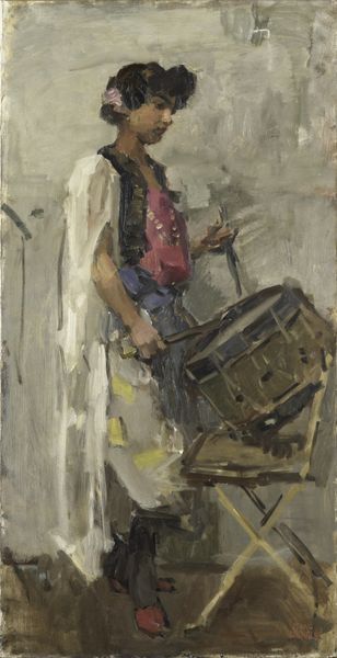 Vajiha Samadova made this painting of women on the banks of the Kura with oil paint on canvas. I love how Samadova approaches mark making here. The strokes are broad and confident, like she's building up the scene with a series of decisive gestures. The material aspect of this painting is what really grabs me. The paint is applied with varying degrees of thickness, creating a rich and tactile surface. The cool blues and purples of the figures' clothing contrast beautifully with the warm grays and browns of the wooden planks and the silvery water. Look at how she renders the light reflecting off the water – it's almost abstract, like a series of shimmering brushstrokes that suggest movement and reflection. The way she paints the figure's hair, with quick, fluid strokes, feels so immediate and alive. Samadova reminds me a bit of Alice Neel, in the way she captures the essence of her subjects with such honesty and directness. And, like Neel, Samadova embraces ambiguity, allowing the viewer to bring their own interpretations to the work.
