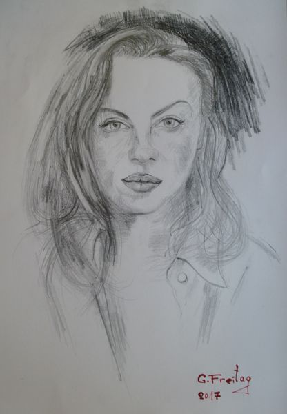 Editor: We're looking at "Arlinda Guma," a pencil drawing by Gazmend Freitag from 2021. There's something quite pensive about her pose, almost contemplative. What strikes you most when you look at this drawing? Curator: Well, first, the immediate visual draw is how the artist utilizes the graphite – its grade, the pressure applied – to construct not just a likeness but also texture and tone. You can see the hand of the artist, the labor involved, in each visible stroke. It challenges our assumptions of “high art” by celebrating the materiality of a common medium like pencil, elevated through skillful application. What sort of paper do you think was used and what implications would that have for the reading of the drawing? Editor: I would guess a fairly smooth paper? I suppose that emphasizes the control Freitag has over the pencil itself, as a rougher paper might add texture beyond what they intended. How does the social context play into your understanding? Curator: Precisely! Now, think about portraiture and its history. Traditionally, it’s been a domain of the wealthy, rendered in oil paint on canvas. Here, we have a contemporary drawing, accessible in both medium and style. It democratizes the genre, suggesting that the act of observation and creation, the *making*, is paramount. It invites a wider audience to participate in art, both as creators and viewers. Editor: That's interesting. I hadn't thought about it in terms of accessibility. Does the contemporary context change our understanding of portraiture more broadly? Curator: It pushes us to question what constitutes art, moving beyond the traditional materials and hierarchies. It challenges us to think about art's role in reflecting everyday experiences, using readily available means. It reframes labor and challenges traditional notions around value! What's your key takeaway then? Editor: I think I see how focusing on the materials and methods, in this case a simple pencil on paper, reveals a deeper conversation about artmaking and access that I hadn't considered before. Curator: Exactly! The focus on material provides new paths into appreciating and understanding an artwork's many cultural connections and historical position.