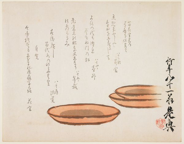Ryūryūkyo Shinsai created "Cherry Blossoms and Shells," a woodblock print now at the Metropolitan Museum of Art, during a time when Japanese art increasingly reflected a dialogue between nature and human experience. Shinsai, an artist working in the late Edo period, captures not just the visual but also the sensory essence of his subjects. The delicate cherry blossoms, symbols of transient beauty, contrast with the enduring shells. Are they treasures found along the shore? Are they emblems of memory? The shells might evoke a sense of place and belonging, connecting the viewer to specific locales and personal histories. The inscription, a poem, integrates text and image, inviting us to contemplate the emotional weight carried by these natural objects. The arrangement, seemingly simple, may mirror a deeper meditation on life's impermanence and the quiet resilience of nature. This print invites a personal reflection on our own connections to the natural world. It is a reminder that even the smallest objects can carry profound stories and emotions.