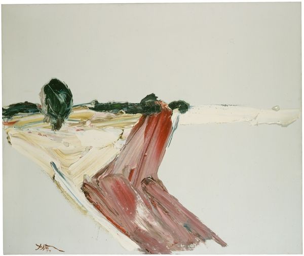 Manoucher Yektai created this untitled oil painting. At first glance, the artwork bursts with thick, textured strokes of color, a hallmark of Abstract Expressionism, evoking a sense of immediacy and raw emotion. Notice how Yektai uses a still life arrangement as a framework but then pushes against it. What appears as objects on a table – fruit, flowers, a vase – dissolve into abstract forms through vigorous application of paint. The composition is structured by a loose, almost geometric scaffolding, yet within these boundaries, Yektai’s unrestrained brushwork introduces chaos. This interplay between structure and spontaneity might be read through a post-structuralist lens. The painting destabilizes fixed meanings, challenging the viewer to find coherence amidst expressive chaos. Ultimately, it’s not just about what is depicted, but how the act of painting itself becomes the subject.
