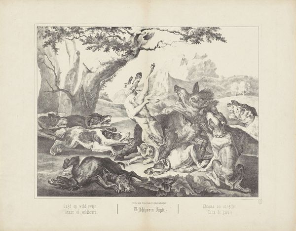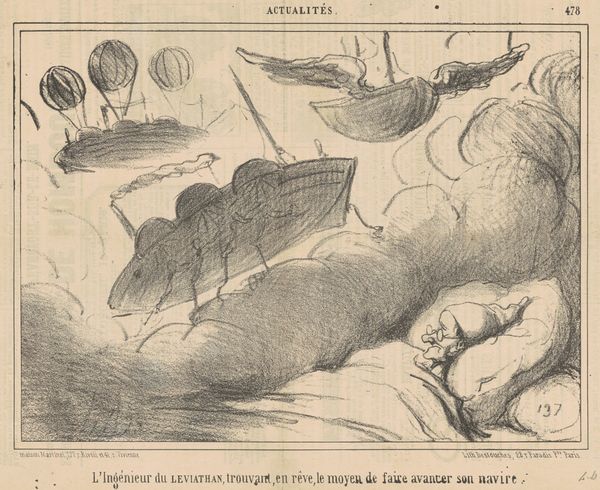 Honoré Daumier created "Dernière élévation de Soulouque" as a lithograph, a medium well-suited to political commentary during the tumultuous 19th century in France. This caricature critiques Faustin Soulouque, the president of Haiti, who declared himself emperor in 1849, ruling until 1859. Daumier’s image depicts Soulouque as a grotesque figure, perched high in a tree, evoking a sense of his detachment from his people and the absurdity of his imperial ambitions. The fleeing figures in the background heighten the sense of chaos and the consequences of Soulouque’s reign. His depiction reinforces prevailing European stereotypes about Black leadership and governance. The imagery carries an emotional weight, reflecting the instability and social upheaval of the time. It's a stark reminder of how political satire can both reflect and perpetuate problematic narratives about race and power. Daumier challenges us to reflect on the legacies of colonialism.
