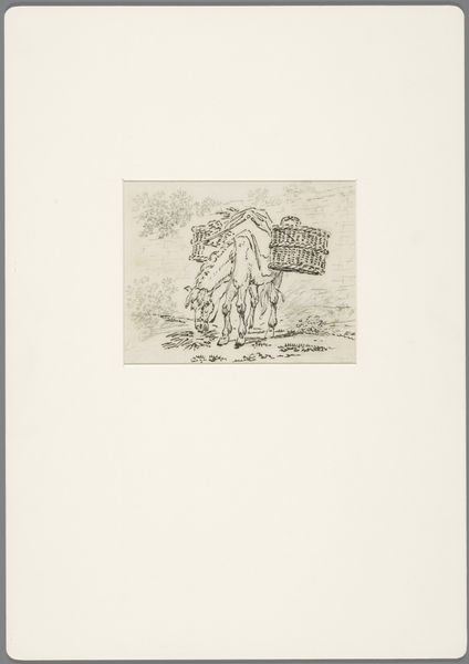 Editor: So, here we have "Ex libris van P.H. Burgers" from 1925 by Richard Nicolaüs Roland Holst. It seems to be a print or drawing. I am struck by the sort of timeless feel of it – like something from an old myth or fable. What do you see in this piece, looking at it through your lens? Curator: I’m immediately drawn to the imagery: the ox, the figure guiding it. They resonate deeply, echoing images of labor and human connection with nature found across cultures. Oxen have historically symbolized patience, strength, and sacrifice. Consider the religious contexts where they bear burdens, or the agrarian societies where their labor literally laid the foundations of civilization. Editor: That makes sense. I hadn't really thought about how loaded such a simple image could be. Curator: Exactly! The human figure controlling the ox also has a potent symbolism, touching upon themes of control, responsibility, and partnership. The image implies not just labor but a symbiotic relationship. But notice too the placement of the title. "Ex libris" meaning "from the books of…” It suggests ownership, yes, but also the weight of knowledge, of inherited stories. Is it a triumphant scene, or one of relentless work? What emotions do you get from these figures? Editor: I can see how the image holds that tension, that ambiguity between triumph and toil, pride and burden. It really adds to the feeling of something ancient being evoked. Curator: Precisely. Holst is tapping into something primal in our collective visual memory, using recognizable images to convey complex and even conflicting feelings. Hopefully this offers some perspective. Editor: This has certainly given me a richer understanding of this piece. It is more than just a drawing; it's a story.