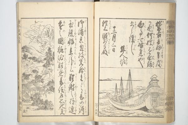 This is a page from "Picture Book of Ogura Hill" made by Nishikawa Sukenobu in Japan during the 18th century. The book presents pastoral scenes alongside Japanese poetry. The two pages use simple lines to depict people working in a field and walking along a mountain path. During the Edo period in Japan, there was a renewed interest in Japanese classical literature and culture, and this book is part of that trend. The inclusion of poetry suggests a desire to connect with the past and to find beauty in everyday life. Woodblock printing was widely accessible and the book can be seen as an expression of a rising merchant class who had the means to engage in art. These books played an important role in shaping the visual culture of the time. By studying the history of printmaking, literature, and social class in Edo-period Japan, we can begin to understand the complex cultural forces that shaped this book and its place in society. This kind of research allows us to appreciate the significance of art as a reflection of its time.