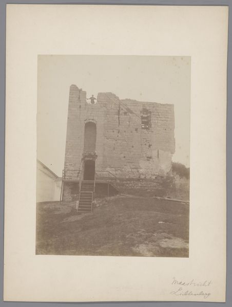 This photograph of Goedereede's former main gate, taken in 1897 by an anonymous photographer, shows the monument's brick construction, a material as humble as it is crucial to the town’s defense. The image captures not just the structure, but also the labor involved in its creation. Each brick, formed from clay and fired, represents a unit of work. The laying of these bricks, stone upon stone, signifies a collective effort and a connection to the local soil. The circular form of the tower, achieved through repetitive bricklaying, speaks of a skilled and patient hand. The attached stairs, similarly constructed, suggest accessibility and a practical purpose, in contrast to purely ornamental architecture. This image invites us to consider the social context of construction, where architecture is less about individual expression, and more about communal effort and the necessities of daily life. It blurs the line between craft and utility, celebrating the functional beauty inherent in simple, well-executed construction.