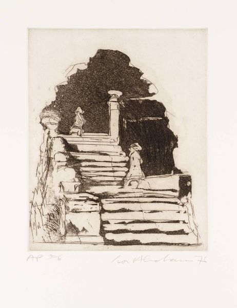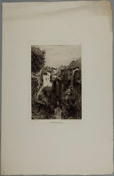 Curator: Immediately, I'm struck by a feeling of enclosure, a sense of bustling activity hemmed in by undefined structures. Editor: This is "Herb Bazaar" by the Dutch artist Marius Bauer, who was born in 1867. Bauer was known for his etchings and paintings depicting scenes from the Middle East and Asia. Curator: Yes, and the bazaar is such a potent symbol. The scent, the bartering—it’s a marketplace of not just goods, but also of ideas, of cultures intermingling. Editor: Bauer often chose subjects that reflected the socio-political currents of his time. The bazaar, especially in colonial contexts, could represent both exoticism and trade. Curator: The figure with their back to us—central in the composition—becomes an emblem of the viewer, beckoned to enter this exchange, this world of spices, secrets, and remedies. The scene is alive. Editor: It does capture the energy of a place where commerce and culture meet. I'm left thinking about the role of art itself as a kind of bazaar, an exchange of visual information.